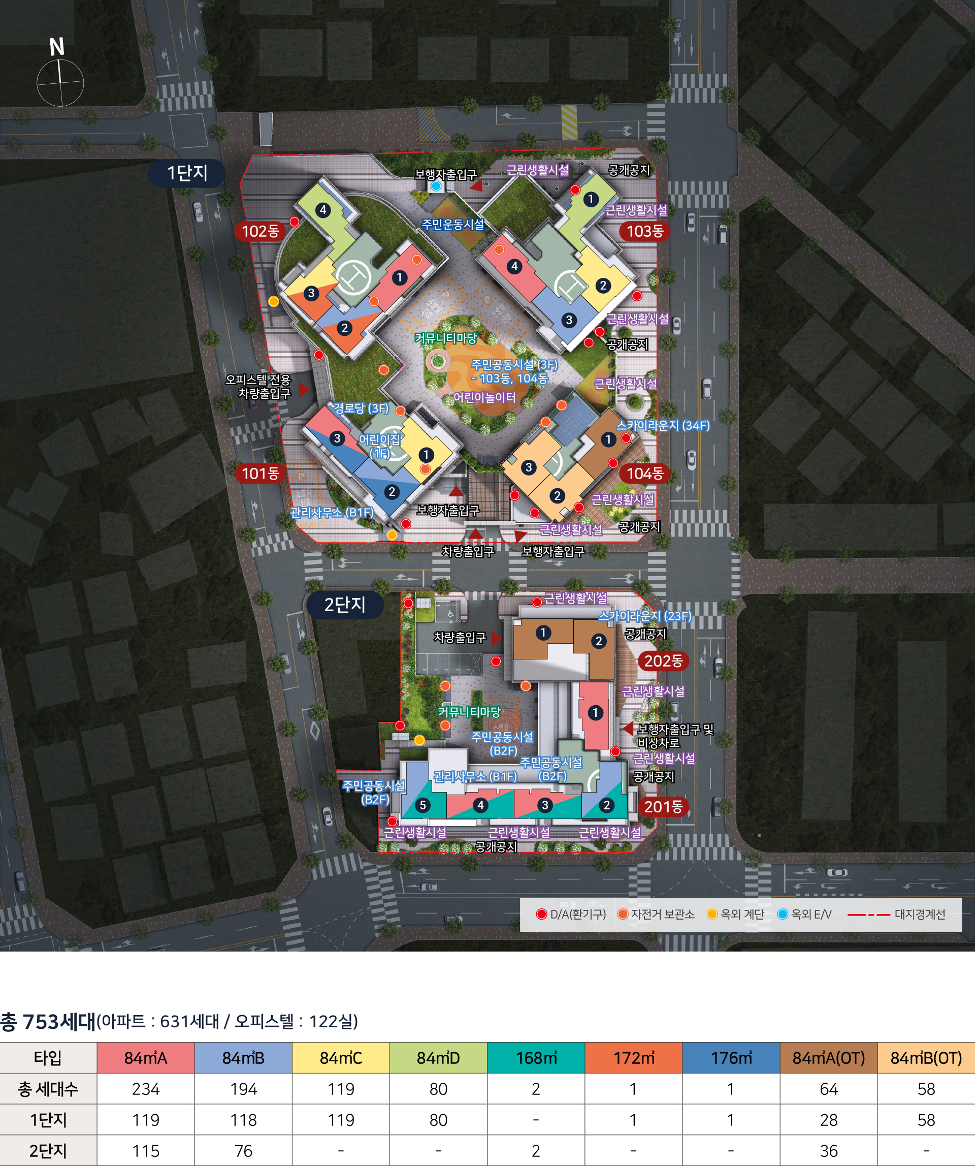 ※「전기통신 사업법」 제69조의2 및 「방송통신설비의 기술기준에 관한 규정」 제24조의2 등에 의거, 기간 통신사업자 협의대표인 한국전파진흥협회 이동통신설비 구축지원센터와 구내용 이동통신설비의 설치 장소 및 설치방법 등에 대해 협의하였고, 단지 내에 기간통 신사업자의 이동통신 중계기 및 옥외안테나가 설치 될 예정이며, 본 공사시 우수한 통신품질이 제공될 수 있는 위치로 변경되어 시공될 수 있음을 명확히 인지하고 계약하여야 합니다. ■구내용 이동통신 장비 및 중계장치 설치 위치[1단지 -옥상]- 102동, 104 동 (※시설 예정 위치 안)