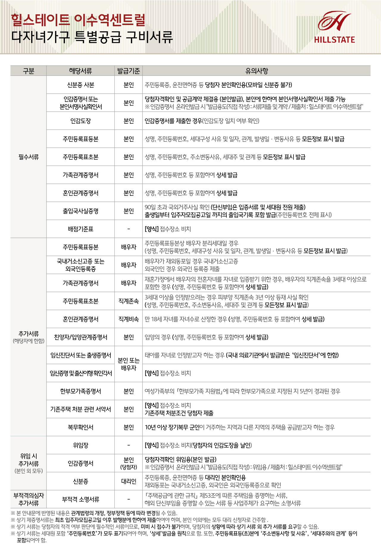 분양안내 서류제출안내문 다자녀가구 특별공급