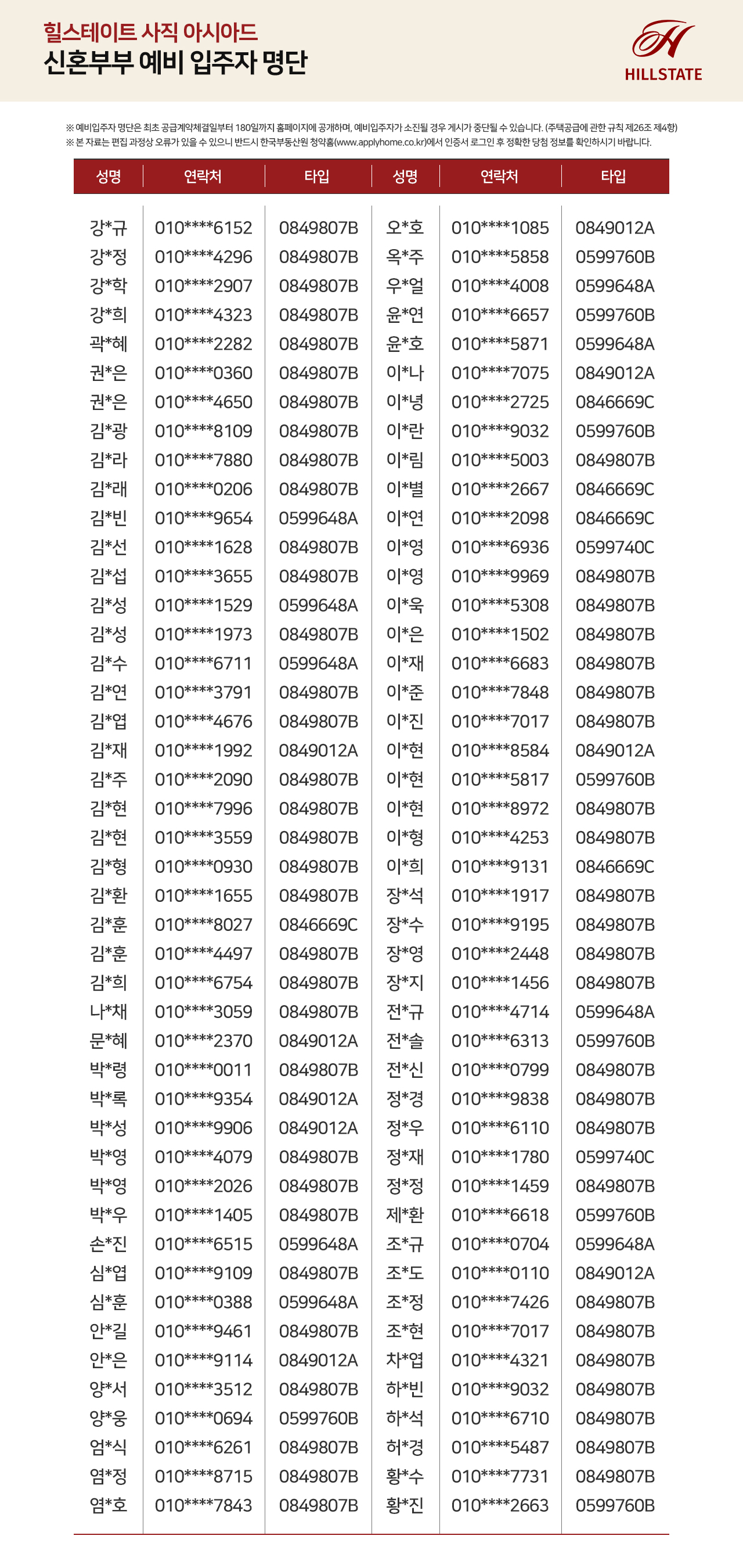 분양안내 예비 입주자 명단 신혼부부