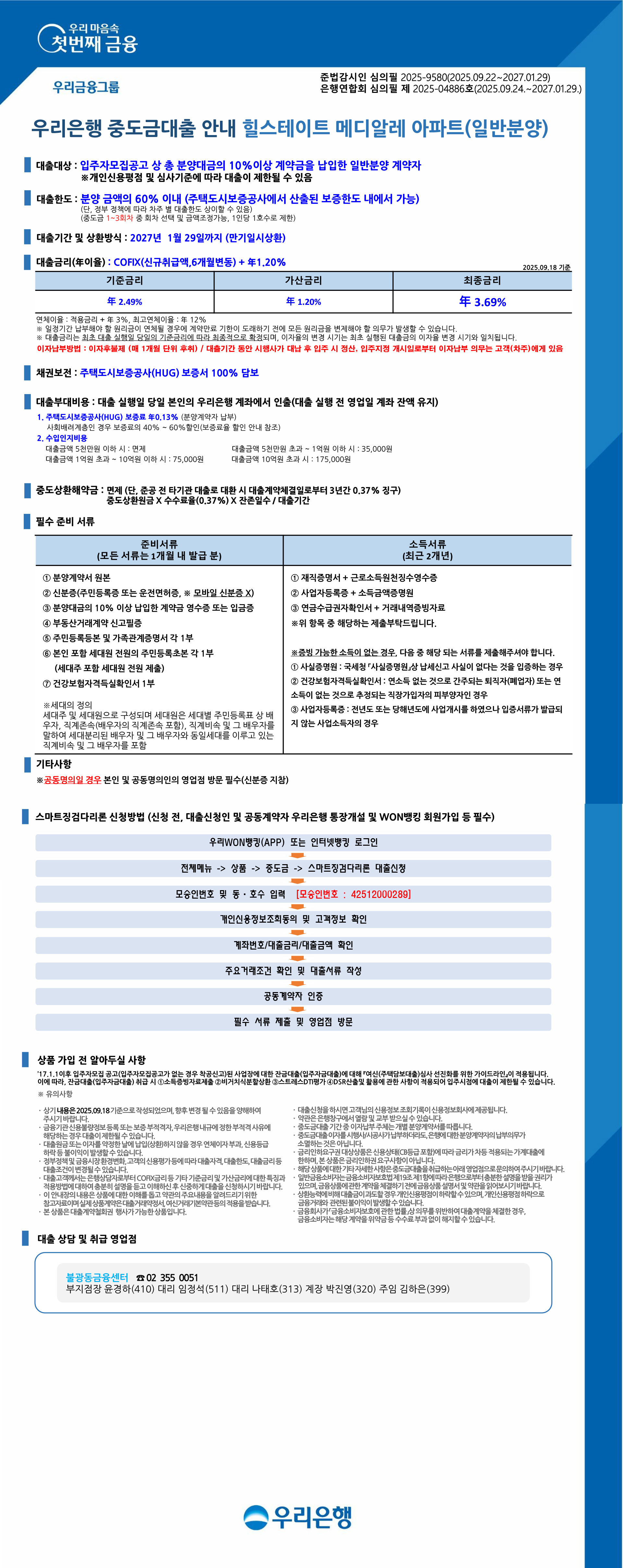 분양안내 중도금 대출 안내 우리은행 대출안내문