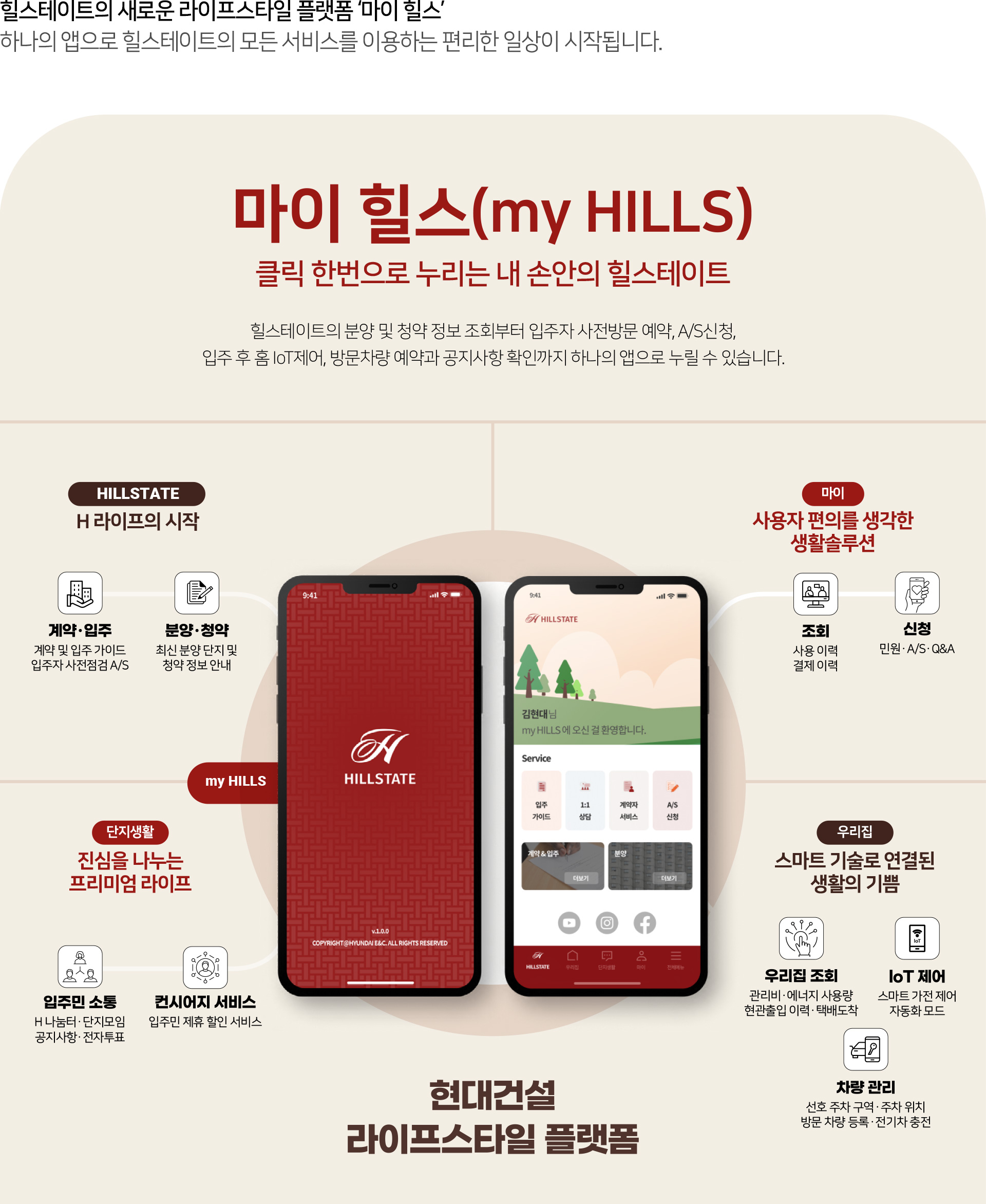 ※ 마이 힐스 서비스의 경우 이동통신사/포털사/제휴사의 서비스가 포함될 수 있으며, 해당 업체 정책에 따라 사용요금 및 사용제한이 발생할 수 있습니다.