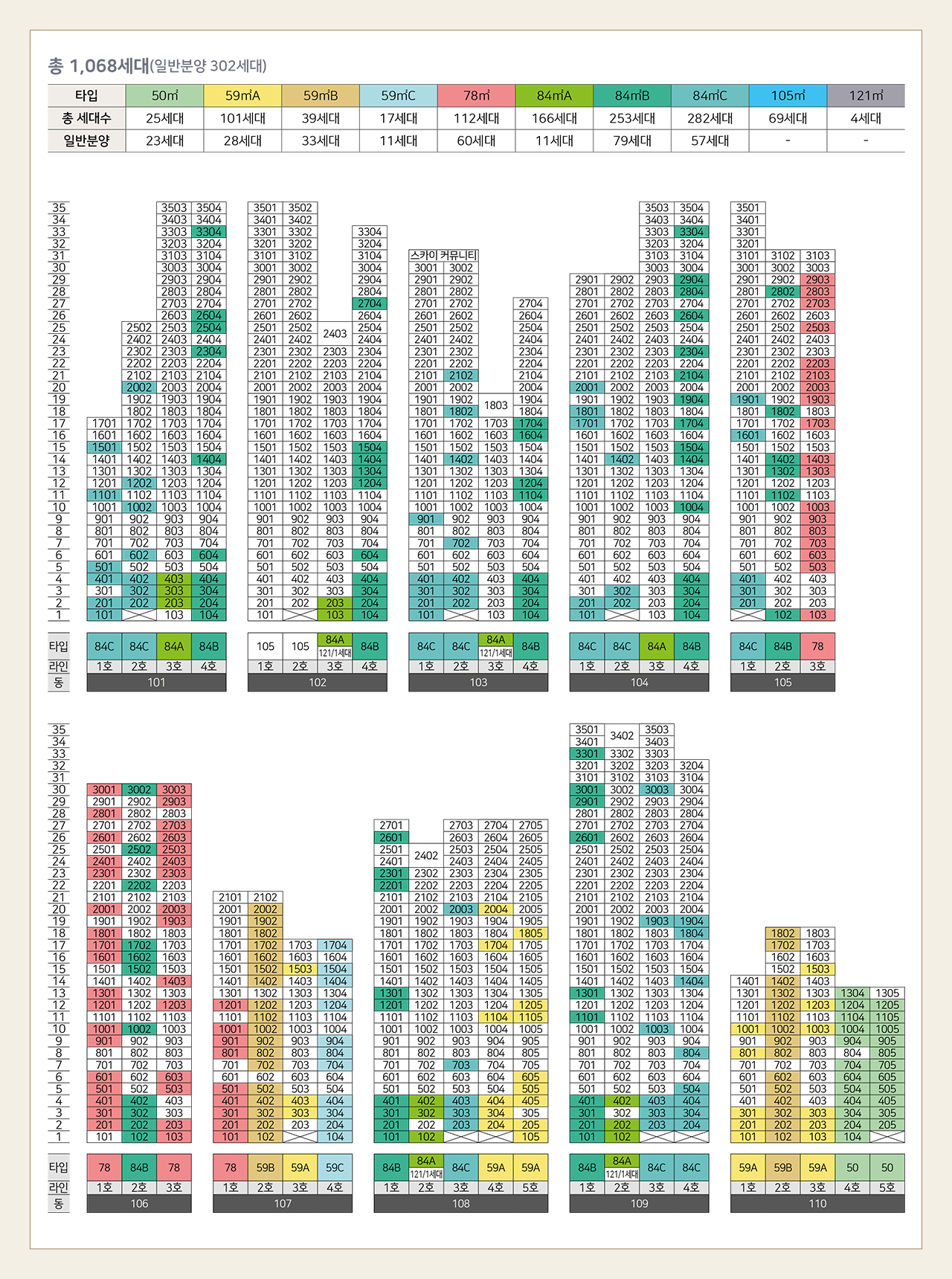 ※ 상기 동·호수 배치도는 오탈자 혹은 오류가 있을 수 있으므로 자세한 사항은 견본주택에 문의하시기 바랍니다.