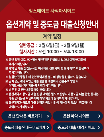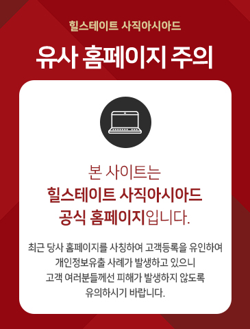 힐스테이트 웹사이트는 HTML5 기준의 브라우저에 최적화 되어 있습니다. Edge, Chrome, Firefox, Safari 브라우저에서는 정상적으로 이용이 가능하며, IE11 이하의 브라우저에서는 일부 기능이 정상적으로 동작되지 않을 수 있습니다. 위의 아이콘을 클릭하시면 해당 브라우저 설치 화면으로 이동합니다.
