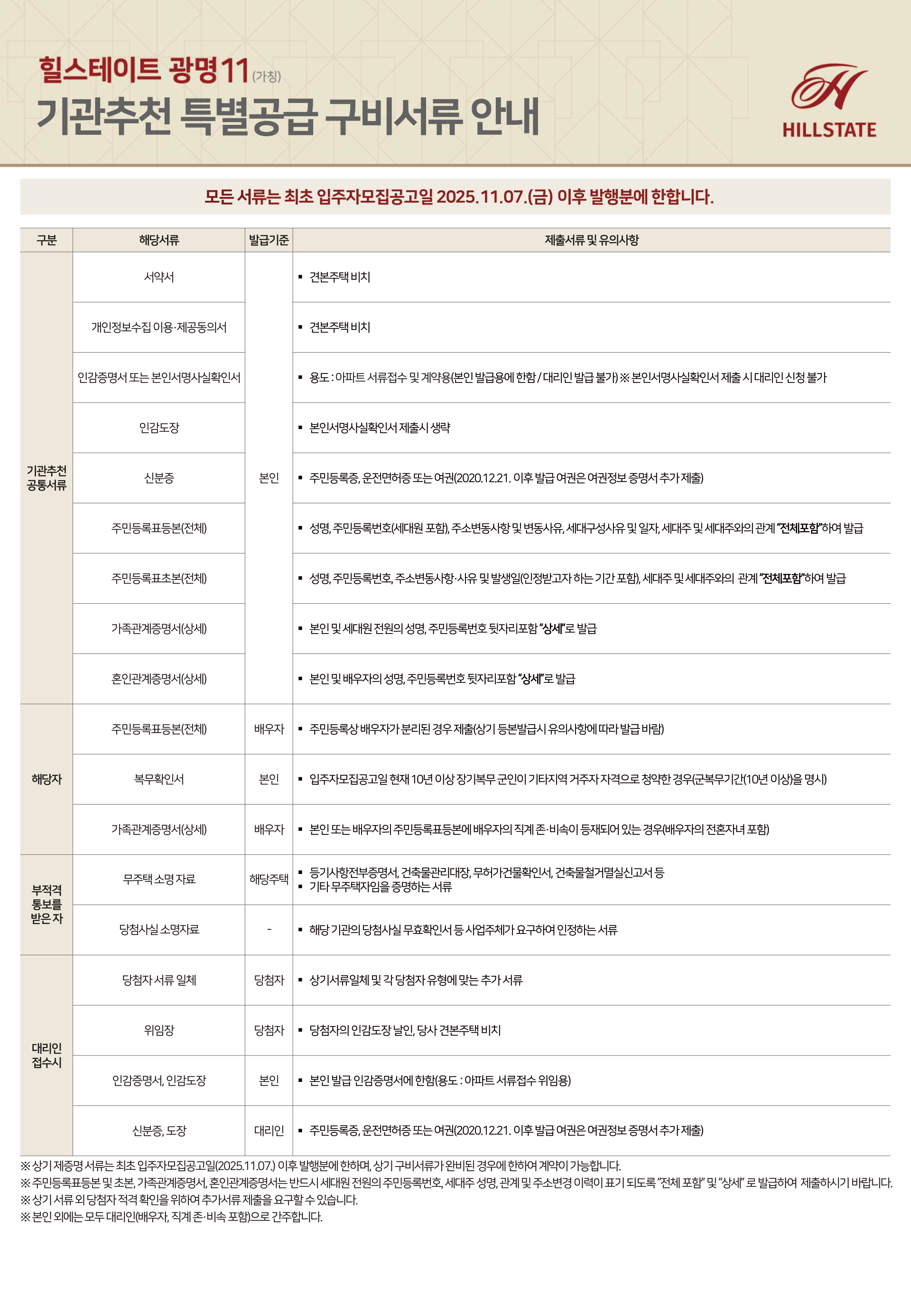 분양안내 당첨자 구비서류 안내 기관추천
