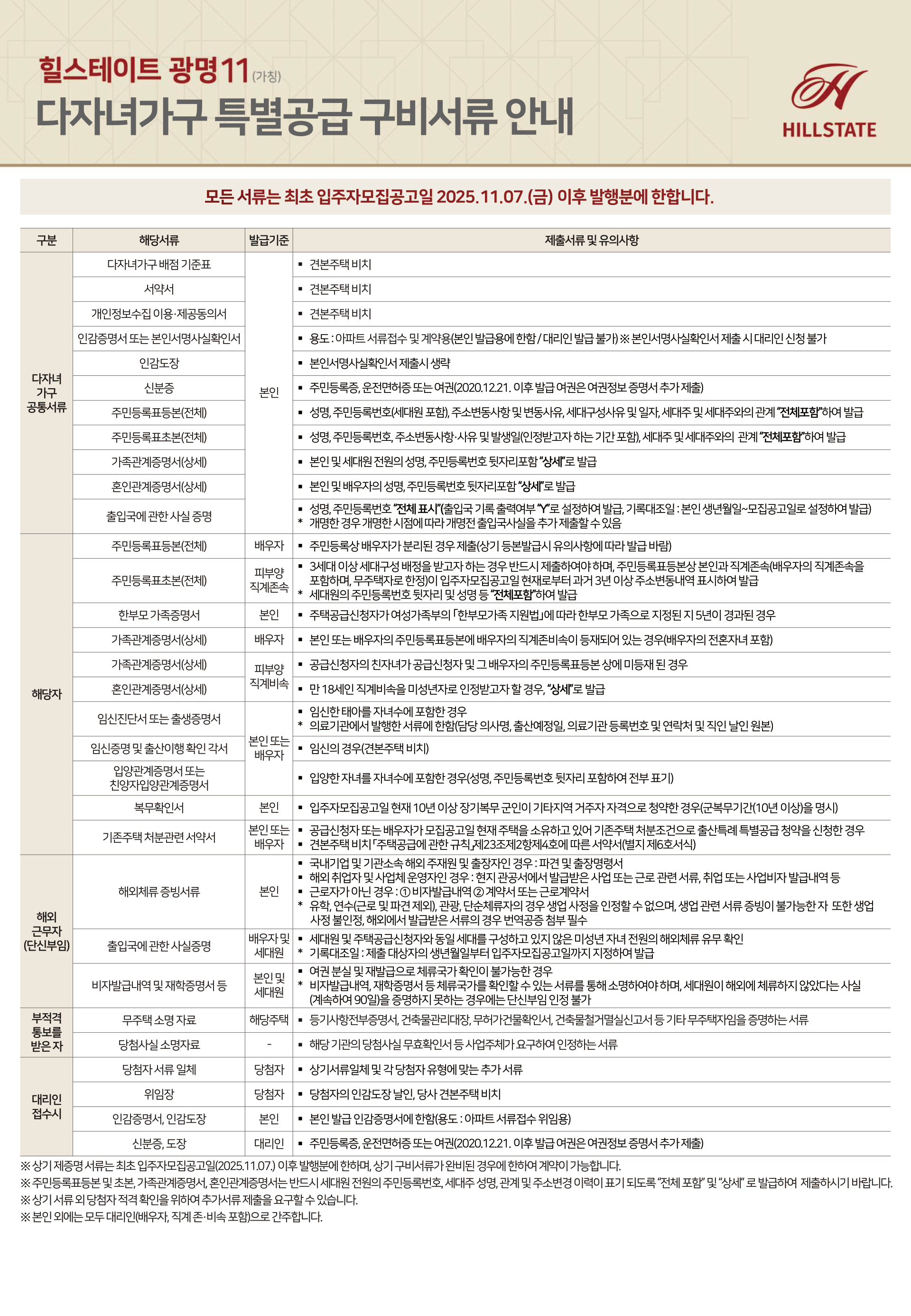 분양안내 당첨자 구비서류 안내 다자녀가구